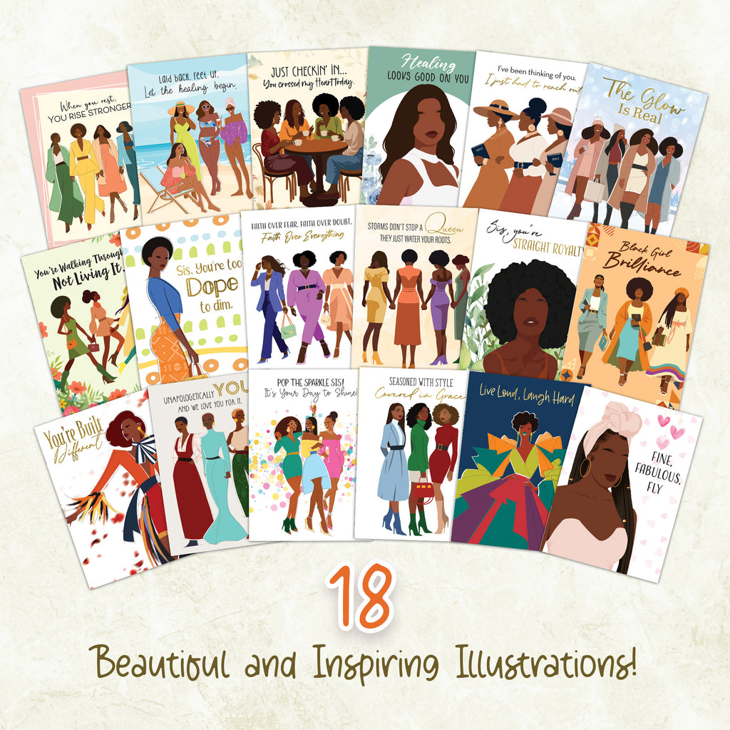 • Stunning Black Women Artwork – Each card showcases vibrant, inspiring illustrations of Black women, making this collection perfect for African American women and those who appreciate culturally rich designs.