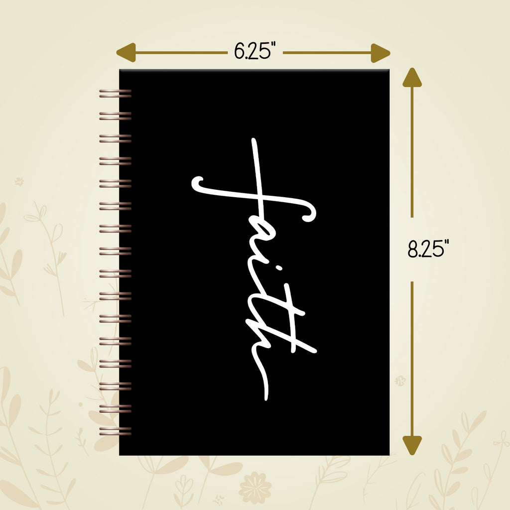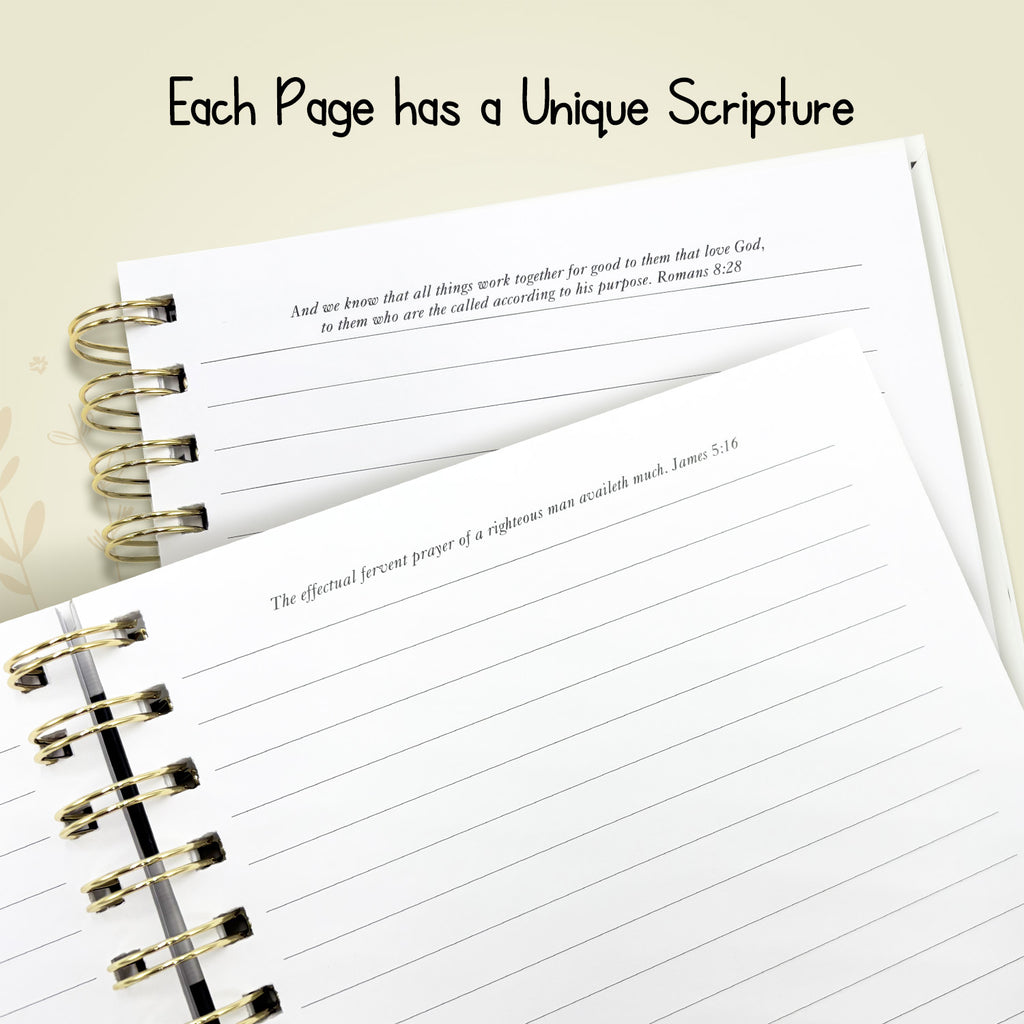 • Quality: The pages are high quality, thick paper preventing any ink bleeding through or smudging. Journal is spiral bound, including 128 pages with scripture at the top of every page. Size: 6.25” x 8.5”